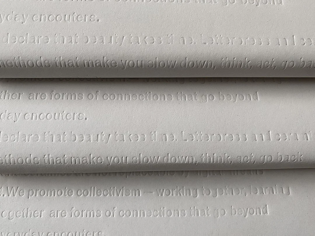 So_Helsinki invited 12 artists to their studios to connect, share and declare. Throughout the ages, artists have been at the forefront of highlighting phenomena that are relevant in their own time.The artists in Manifesto 24 show how valuable traditions such as letterpress and ceramics can survive, become visible, and also be renewed in this age.